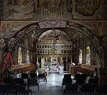 Conform pisaniei slavone amplasate deasupra intrării în pronaos, se cunoaște că: Acest sfânt și Dumnezeiesc locaș, din însuși temelia lui a fost clădit și înălțat cu ajutorul lui Dumnezeu și cu cheltuiala prealuminatei bine cinstitoare principese, a doamnei Elena, cu harul lui Dumnezeu stăpână și voievodeasă a Țării Ungro‑Vlahiei, soția prea cinstitorului și autocrat domnitor Io Matei Basarab, cu truda și ajutorul în parte a celor buni frați ai săi, Căzan Năsturel și Orest Năsturel (…) în anul (…) de la mântuirea lumii 1644 (…)[2]