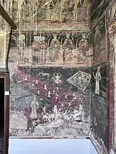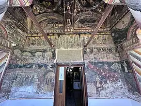 Pictura este executată în stil neobizantin și a fost făcută de Oprea Zugravul ot. Craiova. În exterior, pe peretele de sud al pronaosului, este scris cu vopsea neagră numele zugravului Oprea și anul 1796, când s-a terminat construcția. În pronaos, lucrate în frescă se văd chipurile ctitorilor, îmbrăcați în costume boierești de epocă. De menționat că în dreapta pronaosului, este zugrăvit portretul lui Oprea zugravul și al ucenicului său, Manole.