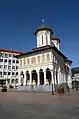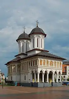 Biserica "Sfinții Voievozi", aflată în Piața Victoriei, în fața Palatului Comunal, este ctitoria negustorilor Dobre Sîrbu și Radu Cupetu ale căror portrete pot fi văzute în pronaos. Construcția s-a realizat între 1748-1764, imobilul fiind cunoscut și sub numele Biserica Negustorilor, Biserica Domnească și chiar Biserica "de la Jii". Planul bisericii este în formă de cruce. Construcția a suferit de-a lungul timpului mai multe intervenții care nu i-au alterat forma originală. În 1843, cu ajutorul lui Pavel Kisseleff se zugrăvește și înfrumusețează catapeteasma, iar în 1855 pictura în stilul bizantin este acoperită cu pictura în stilul renașterii de către pictorul Mișu Popp.[2]