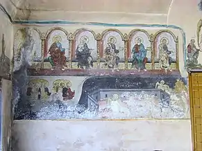 Mica ctitorie a boierilor gorjeni din neamul Bengeștilor de la Călugăreasa, constituie un document complex datorat reprezentărilor exterioare. Pe fațada nordică sunt reprezentați cei ce "au ridicat" edificiul și care nu au mai avut loc în pronaos alături de familia ctitorului "de jure": Dinică isprăvnicelu, postelnicul Ioan, logofătul Modoveanu și în mod neașteptat "Bekir aga cel care a păzit curtea" [1].