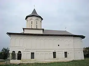 Biserica satului a fost ridicată la 15 august 1814 de „kir popa Ioan i polcovnicu Ioan Bădescu i logofăt Ioan Ciocăzanˮ [2]. Biserica de zid, cu lungimea de 21 m și lățimea de 8 m, are formă de navă, cu o singură turlă, cu pereți groși din cărămidă arsă. La interior are arcade solide și doi stâlpi groși în pronaos, iar la ferestre ocnițe și arcade îngropate spre înăuntru.