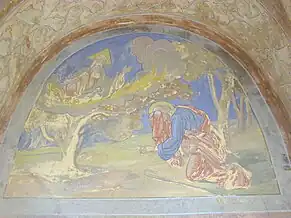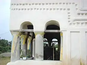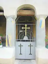 În curtea bisericii se află un monument al eroilor și patru troițe din metal și lemn.