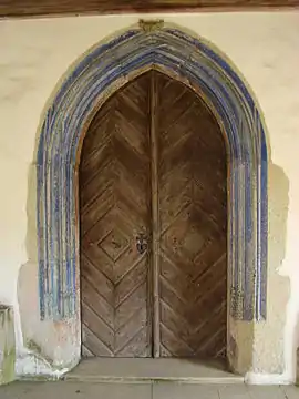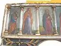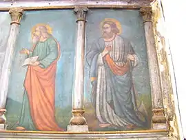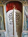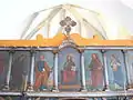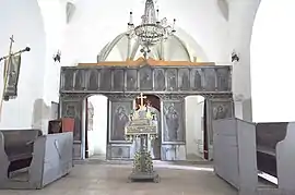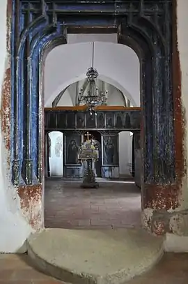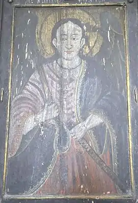 Biserica nu are pisanie. Pictura veche nu se păstrează, ci doar un mic fragment de pictură în partea de apus a altarului, deasupra proscomidiarului, reprezentând chipul unui sfânt.