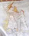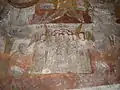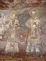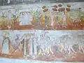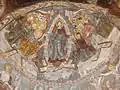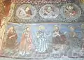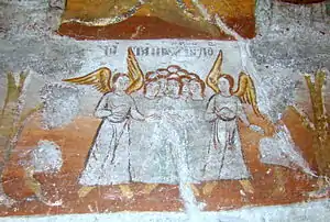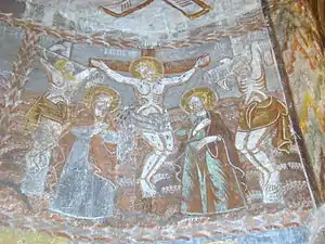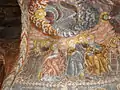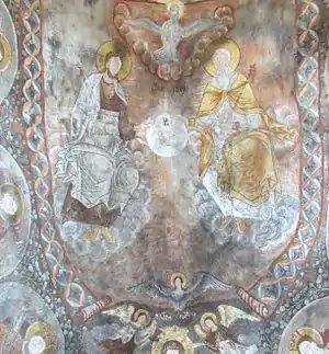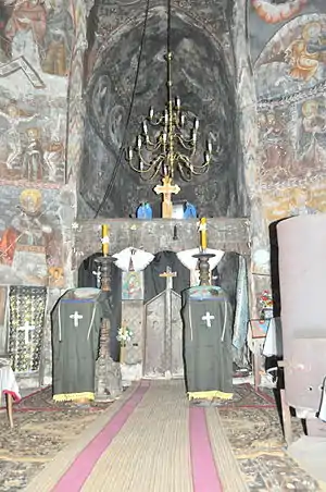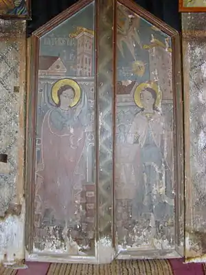 Decorul mural este alcătuit din două părți distincte, anume fresca naosului și cea a pronaosului, fiecare dintre acestea purtând pecetea distinctă a personalității artistice a autorului. Stilistic, execuțiile sunt asemănătoare, cu toate că nartexul are tratare mai liberă, explicabilă prin tematica abordată. Pe baza regionalismelor prezente în inscripțiile care însoțesc tablourile iconografice, s-a stabilit că pereții pronaosului au fost împodobiți de zugravul Ioan din Deva, celuilalt pictor, Nicolae din Pitești, revenindu-i decorația navei. Colaborarea pictorului transilvănean cu cel muntean este deosebit de importantă, ilustrând procesul de unificare artistică a provinciilor românești de pe cei doi versanți ai Carpaților. Mai mult, tehnica și stilul icoanelor tâmplei simple din lemn care separă spațiul navei de cel al absidei altarului indică în plus, la sfârșitul secolului al XVIII-lea, prezența altui exponent al picturii muntene: Simion Zugravul din Pitești.