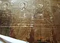 Ansamblul iconografic, executat în anul 1765, poartă semnătura meșterilor zugravi Ioan din Deva și Nicolae din Pitești; datele au fost transmise de pisania de pe peretele vestic al navei: ”Cu ajutorul Tatălui și cu îndrumarea Fiului și cu purcederea Duhului Sfântu s-a zugrăvit aciastă sfântă biserică în zilele Înnălțatei Chezaro Crăiesii noastre Mariei Therezii și fiind episcop țărăi Ardealului, neunit, Priaosfințitul D.D.Dionisie Novacovici de la Buda și fiind protopop eparhii chir Iacovu den Dobra și fiind preot acești biserici popa Gheorghie ot Câmpuri și crăsnicu Olaru Ionu ot Gura Sadului și s-au zugrăvit de smeriții între zugravi ieroduiacon Ioan ot Deva și Nicolae zugrav ot Pitești. Anii Domnului 1765 Octomvrie întăia zi.”