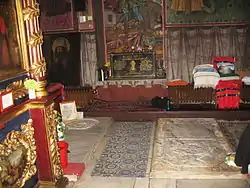 - Icoana hramului - se află în fața altarului, la dreapta; a fost ferecată în argint în 1842