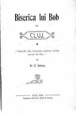 - Dr. Elie Dăianu, Biserica lui Bob în Cluj, Cluj 1906.