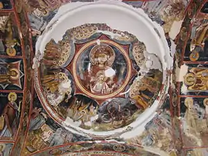 Iconografia naosului este alcatuită conform aceluiași principiu, fiind inspirată din aceeași idee. Două din scenele figurate în timpane trimit la intrupare: Nașterea Fecioarei și Nasterea Mântuitorului. Amplasarea Cinei în registrul Patimilor e menită să sublinieze ideea de sacrificiu, condiție fundamentală a învierii.