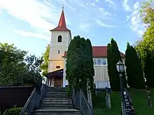 Este clădită din piatră și cărămidă, în formă de navă, cu un turn pe latura de vest, singura intrare fiind pe sub turn. Altarul este acoperit de o boltă din cărămidă, iar naosul și pronaosul de tavan drept dn lemn, tencuit. Zidul de cărămidă ce desparte altarul de naos și formează catapeteasma are trei deschideri.