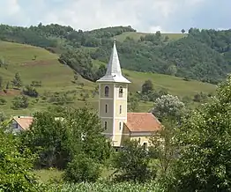 Lăcaș de cult din piatră, având un plan dreptunghiular, cu altarul nedecroșat, poligonal, cu trei laturi, ridicat între anii 1790 și 1797. Biserica posedă un valoros iconostas, opera unui meșter local, a cărui ornamentație sculpturală policromă îmbină arta barocă apuseană cu cea brâncovenească de factură sud-carpatică. Decorul iconografic a fost realizat în anul 1985, de pictorul Lucian Mara din Deva[2].