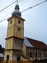 Biserica se află în vechiul centru al comunei, pe locul numit „La Scaun”, unde mai demult se afla locul de judecată și cimitirul satului. Pe locul actualei biserici de piatră a existat o mai veche biserică din lemn, datată 1688, și vândută în secolul al XVIII-lea parohiei din Satu Nou, Brașov[4].