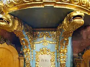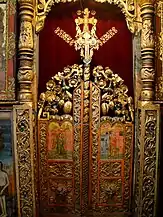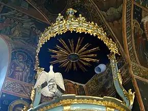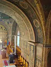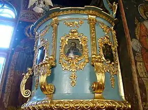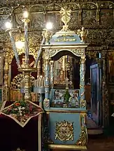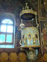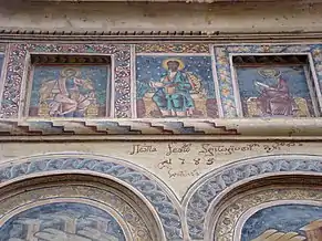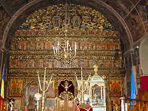 La intrarea în biserică, deasupra ușii, pe zid se remarcă inscripția Dela zidirea bisericii anii Domnului 1725 mai 29, iar ceva mai jos, săpat în grinda de lemn de deasupra ușii Anii Domnului 1755 Mai 29. În biserică fost înmormântat în anul 1788 episcopul Ghedeon Nichitici, al cărui mormânt se află în fața altarului, acoperit cu o lespede roșie.