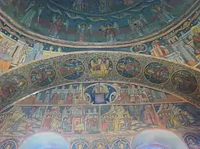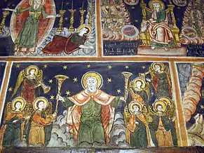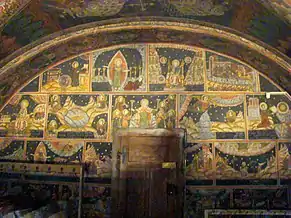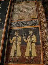 În pronaosul bisericii sunt zugrăvite portretele pictorilor de Aleman și Bucur, nepoții popii Man, care au contribuit la zugrăvirea ei. Aceștia au făcut parte din școala de zugravi de biserici din secolul al XVIII-lea din care se remarcă Ioan și Gheorghe Zugrav, popa unit Radu Man și fii săi, Stan și Iacob, care au pictat cupola din Catedrala Sfânta Treime din Blaj și biserica mănăstirii Curtea de Argeș.