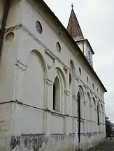 Se remarcă calotele joase, cea din naos având o formă eliptică. Ferestrele au o formă ogivală, de factură gotică; una din ferestrele laturii de sud a fost înlocuită de un acces nou spre naos. Cele două căi de acces în tinda de sub turn au fost închise recent cu tâmplărie metalică.