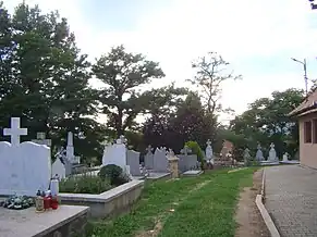 În cimitirul bisericii se găsesc mormintele unor personalități ale Bisericii Române Unite cu Roma, precum Timotei Cipariu, Ioan Axente Sever, Alexandru Sterca-Șuluțiu, Ioan Micu Moldovan, Ioan Rusu, Ionel Pop, Ștefan Manciulea și Basiliu Rațiu.[6]