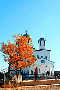 Numele satului de la poalele dealului Denis-Tepe - Hagilar – este de origine turcească și în traducere înseamnă “satul hagiilor” (adică al celor ce au făcut pelerinajul la locurile sfinte). Locuitorii satului – de origne bulgară și aparținând confesiunii creștin ortodoxe – au construit pentru nevoile lor religioase un modest lăcaș de cult. Înainte de anul 1898 exista o biserică mică construită din paiantă și acoperită cu stuf. O dată cu mărirea obștii creștine din sat, credincioșii din Hagilarea izbutesc să-și construiască în 1898 o nouă biserică din piatră și din cărămidă, acoperită cu tablă, destul de încăpătoare și înzestrată cu toate obiectele liturgice. Bătrânii satului vorbesc despre faptul că un crescător de oi înstărit de aici a intervenit, înainte de începerea lucrărilor, pe lângă reprezentantul Imperiului Otoman de la Tulcea, pe care l-a convins prin mijloace materiale să permită înălțarea unei turle pe viitorul lăcaș, însă această întâmplare nu se poate proba documentar. Nu se cunoaște numele preotului care a inițiat și a coordonat lucrările de construcție ale bisericii și nici anul sfințiri acesteia. Este de presupus că toate acestea s-au petrecut la începutul sec. XX. Cert este că biserica a fost închinată Sfintei Fecioare Maria, având hramul “Adormirii Maicii Domnului” (15 august). Biserica din Hagilarea este funcțională până în toamna anului 1940, când cutremurul din noiembrie o avariază grav, astfel încât obștea creștină este nevoită să o părăsească și să-și amenajeze o casă de rugăciune.