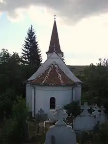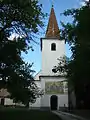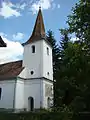 Turnul, nava lăcașului și altarul sunt acoperite cu țiglă. Turnul are un etaj, cu acoperișul în formă de piramidă cu opt laturi pe bază patrulateră. Acoperișul cu două pante al bisericii se termină în pignon (fronton), deasupra altarului. Acoperișul altarului e cu 1,50 m mai scund decât al bisericii și are muchiile impuse de forma absidei.