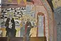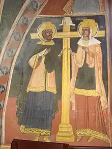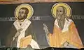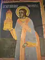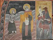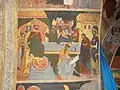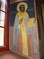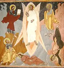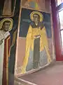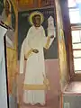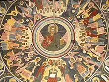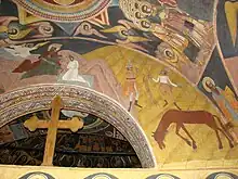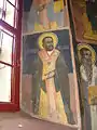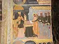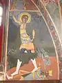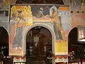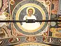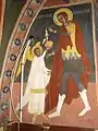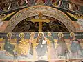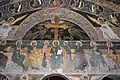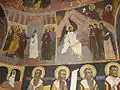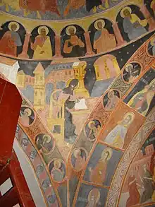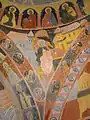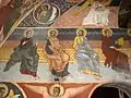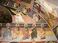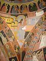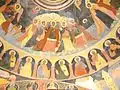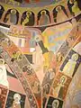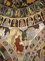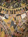 Pe cupola naosului, Isus Hristos Pantocrator. Împrejur, cetele îngerești, alcătuind patru grupe, se despart prin capete de Heruvimi și Serafimi. Urmează un șir de apostoli, toți cu epitrahil și evanghelii legate în aur ori deschise. Pe arcul dinspre tinda femeilor, au fost înfățișate episoade din Judecata lui Iisus.
