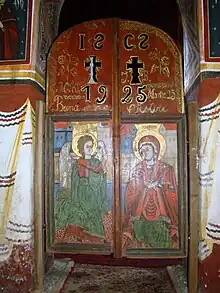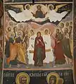 În altar au fost pictați diaconi și arhierei. Mai apar și prooroci. Sunt înfățișate și Duminecile Penticostarului. Pe boltă, Dumnezeu Tatăl binecuvântă cu dreapta, iar cu stânga ține globus cruciger.[6]
