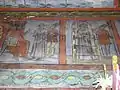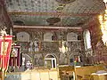 Pictura din naos- Șarpanta a fost pictată în întregime. Zugravul a împărțit spațiul gri-albăstrui al cerimii în doua registre longitudinale și alte patru registre transversale, delimitate prin brâie sugerând motivul funiei și ornamente florale, pictate cu roșu, galben și verde. Cadrul pictural al boltei astfel structurate îl compun mai multe scene de forma unor medalioane. În primul medalion, între ghirlande, este reprezentat Dumnezeu –Tatăl („D(omnu)l Tat(ăl)”); celelalte, redau: chipul antropomorf al Soarelui, Maria Orantă, Sf. Împărați Constantin și Elena, încadrând o cruce înaltă, decorată cu motive florale, în fine, reprezentarea antropomorfă a Lunii. La capătul registrelor trnsversale sunt reprezentați serafimi. Pereții naosului au pictura dispusă în cadrul a două registre delimitate prin brâie decorative identice cu cele de pe șarpantă. Registrul I, de pe peretele sudic, înfățișează (de la est spre vest) următoarele scene: Sf. Evanghelist Ioan („S.Ev.Ioan”) și un număr de șase reprezentări din ciclul patimilor Domnului: Vânzarea Domnului („Vânzarea lui Hs.”), Iisus la Ana („Anna”), Iisus la Caiafa („Caiafa”), Iisus la Pilat („Pilat”), Iisus în închisoare („Temniță”), friza încheindu-se cu reprezentarea Sf.Evanghelist Marcu („S.Ev.Marcu”). Același registru redă, pe peretele nordic (de la vest la est), scena cu Sf. Evanghelist Luca („S.Ev.Luca”) și următoarele alte șase scene din ciclul patimilor Domnului: Divanul („Divan”), Încoronarea cu spini („L-au încoronat pre Is.Hs.”), Iisus la stâlp („Când l-au legat pre Hs.”) – scena în care cel ce îl schingiuiește pe Iisus Hristos a fost înfățișat aievea unui păgân turc, îisus pe drumul Golgotei („Ducerea Crucii”), Răstignirea Domnului („Răstignirea lui Is.Hs.”), Coborârea de pe cruce („Pogorârea de pre cruce a lui Is.Hs.”) și, în final, chipul Sf.Evanghelist Matei („S.Ev.Matei”), toate învăluite în ghirlande din frunze și flori. Registrul II cuprinde, pe peretele sudic (de la est la vest), delimitate prin draperii și ghirlande, următoarele scene: Omul cel flămând (astăzi, scena nu are legendă sau titlu), Nașterea Maicii Domnului (nu are titlu), Nașterea Sf.Ioan Botezătorul („Nașterea S.Ioan„), Tăierea capului Sf. Ioan Botezătorul („Tăerea capului S.Ioan”), Înălțarea Sfintei Cruci („Înălțarea Crucii”), Omul cel setos („Omul cel sătos”), iar pe peretele nordic (de la vest la est): Omul cel robit („Omul cel robit”), Duminica Orbului („Dumineca orbului”), Duminica Tomii („Dumineca Tomi-Is.Hs.”), Duminica Samarinencei („Dumineca Samarinăn.”-Is.Hs.”), Intrarea în biserică a Maicii Domnului (Intrarea în biserică a Preaci”) și Omul cel gol („Omul cel gol”). În extremitatea vestică a naosului, deasuspra scaunelor, pe peretele sudic, zugravul le-a înfățișat pe cele Cinci fete înțelepte („Cinci fete înțelepte”), iar pe peretele nordic pe cele Cinci fete nebune („Cinci fete nebune”). Peretele vestic al naosului (din fața iconostasului) are dispusă pictura în cadrul a trei registre, redând teme din Vechiul Testament și altele contemporane, profane, din viața comunității. Registrul I îl compun (de la sud la nord) scenele: Cain și Abel („Cain” – „Abel”) și Sf. Prooroc Iona și Chitul(„Ioan (a) proroc”). Registrul II cuprinde (de la sud la nord) scenele: Daniil în groapa leilor („În groapa....pasaj șters – n.n., F.D.), portretul unui bărbat distins și cucernic în costum de epocă, cu suman lung și cu mâinile la piept, Sf. Prooroc Ilie, ținând hățurile în mână, într-un car tras de doi cai, iar alături Proorocul Elisei, ținând, deasupra capului, cojocul, portretul altui bărbat distins si cucernic, într-o ținută identică, cu mâna ridicată și degetul arătător întins, amintind postura de închinare a sfântului lăcaș, și scena Jertfa lui Avraam („Jertfa lui Avram”), în care Avraam se aseamănă cu omul sărman, din cele patru scene amintite mai sus. Registrul III înfățișează (în stânga) tabloul tutorilor bisericii. Astfel îi numește însuși zugravul, în cadrul legendei scenei: „Tutori(i) biserici(i)”, astăzi ștearsă, fiind vorba, prin urmare, despre epitropii lăcașului. La ieșirea din naos (în dreapta) a fost pictat portretul înfățișându-l pe preotul satului Homorog („Parohul locului”, legendă astăzi ștearsă).