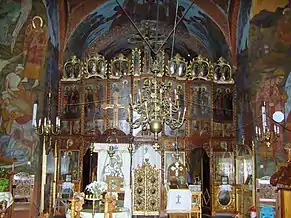Are 24m lungime și 4m lățime. Icoanele de pe catapeteasmă sunt opera pictorului Gheorghe Zugravu. Pictura în frescă a fost realizată de arhimandritul Varahil Moraru între 1957 și 1962.