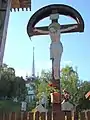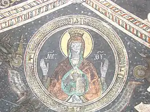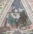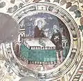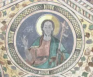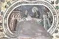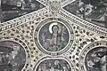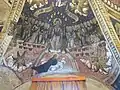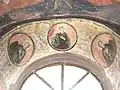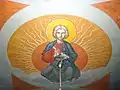 Dumnezeu-Tatăl figurat ca un bătrân în straie albe, cu barba ninsă şi un nimb triunghiular, înscris în cerc deasupra capului; el şade pe tronul Judecăţii, ţinând pe genunchi, deschisă cartea vieţii, în care sunt trecute faptele tuturor, în baza cărora vor fi judecaţi.JPG.webp)