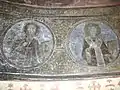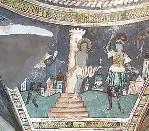 Pereții verticali erau odinioară împodobiți cu aceeași frumoasă pictură, însă în urma unor lucrări de consolidare, tencuiala a fost decapată și înlocuită cu una pe bază de ciment, această intervenție ducând la dispariția picturii vechi. Pentru restaurarea picturii s-a întocmit un proiect, coordonat de doamna profesoară Anamaria Baciu de la Facultatea de Teologie Ortodoxă Cluj-Napoca. Restaurarea picturii a început în urmă cu 10 ani, însă din lipsă de fonduri, cei ce au executat această lucrare au fost nevoiți să o întrerupă.