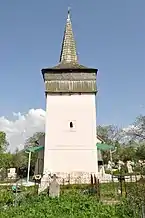Frapantă la această biserică este planimetria altarului, semicircular la interior și heptagonal în exterior; absida este ușor decroșată față de corpul navei. Clopotnița masivă, cu un foișor închis de lemn și fleșa ascuțită, învelită în șindrilă și prevăzută, pe laturile sale de sud și de nord, cu două intrări; la acoperirea lăcașului propriu-zis s-a utilizat țigla. Peretele de miazănoapte este sprijinit de patru contraforți. Pictura exterioară s-a dovedit ulterior a nu fi altceva decât o simplă zugrăveală naivă.