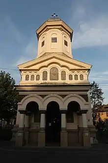 Este construită în 1813 pe ruinele unei biserici mai mici, ridicate în 1789-1791 și distrusă din cauza cutremurului din anul 1802. A fost ridicată de preotul Grigore Chițu, cu sprijinul preoților Mușat și Stoica, diaconului Petre și al breslei cavafilor, având inițial doar turla de pe naos.