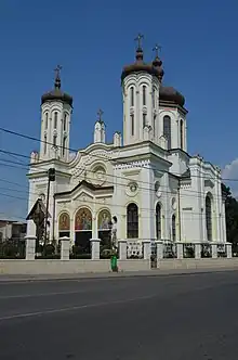A fost ridicată în stilul gotic, iar la 1877 a suferit o modificare, turlele fiind făcute în stilul rusesc, în formă de ceapă. Este concepută pe lățime, lucru care se vede mai ales la fațada vastă, lucrată pe mai multe planuri, unul dintre acestea, poligonal, apărând ca un pseudofronton și având în mijloc o mare rozetă. Această fațadă, bogata ornamentație exterioară, corpurile paralelipipedice care servesc drept postament turnurilor aduc o contribuție barocă stilului neoclasic al lucrării, în timp ce turlele aparțin stilului tradițional românesc (nu fără influențe rusești la cupolele bulbucate). În 1880, biserica a fost pictată de Gheorghe Tattarescu, care a realizat aici una dintre cele mai bune lucrări ale sale.