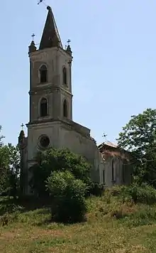 Pe locul actualei biserici a fost ridicată în anul 1844 mai întâi o capelă. Pe parcursul unei generații această capelă a devenit insuficientă pentru localitatea aflată în plin avânt demografic, astfel încât prin grija parohului Theodor Dominici a fost construită între anii 1873-1881 noua biserică. Din cauza dificultăților financiare, turnul a fost construit inițial doar până la primul nivel, fiind prevăzut cu un acoperiș provizoriu. Exteriorul bisericii a rămas netencuit, iar drept clopotniță provizorie a servit o construcție din lemn ridicată în curtea bisericii.
