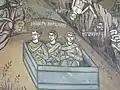 Comparând cele cuprinse în pisanie, cu cele zugrăvite în biserică, pe pereții pronaosului, constatăm că totul coincide cu perioada zugrăvirii, în afară de Ștefan Cantacuzino (1714-1716), scris din greșeală Șerban, admițând că s-a început construirea bisericii în timpul domniei acestui voievod și s-a terminat în 1718, sub Ioan Mavrocordat. Faptul că generalul Stephan Steinville a fost zugrăvit și el în biserică se explică prin faptul că în timpul stăpânirii austriece a Olteniei (1718-1739), boierii Olănești și-au păstrat privilegiile obținute sub domnii anteriori, iar unii dintre ei au deținut chiar funcții sub noua administrație: Drăghici era căpitan de plai, iar Radu Olănescu a ocupat funcția de vornic al județului Vâlcea în anii 1733 și 1735. De aceea, boierii Olănești, ctitori ai bisericii, au făcut această concesie: ca generalul Steinville să fie zugrăvit într-o biserică ortodoxă. Concesia a durat numai pe perioada stăpânirii austriece, pentru că după 1739, când austriecii au pierdut Oltenia, chipul generalului a fost înlocuit cu cel al părintelui Ioan monahul, fratele jupânesei Ecaterina.