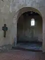 Bazilica are un cor pătrat ce este boltit pe arce frânte în timp ce o semicalotă acoperă absida principală semicirculară. Pe peretele sudic al corului se regăsește o ușă, în prezent zidită, pe care privirea descoperă urme de pictură murală. Cu toate că altarul bisericii a fost demontat, se mai păstrează un fragment sculptat din nișa centrală, fragment datat din anul 1425, care o înfățișează pe Fecioara Maria și care se află în prezent la Muzeul Brukenthal din Sibiu. De asemenea au fost pictate o mulțime de cruci de consacrare în mai multe părți ale bisericii.[5]