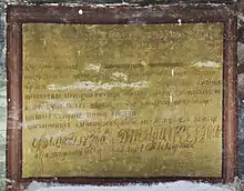 Faptele ridicării bisericii sunt redate de pisania scrisă peste intrare. Textul ei, în limba română cu litere chirilice reține următoarele: „Cu ajutoriu sfintei și dă viață făcătoarei Treime ziditus-au această sfăntă și d[u]mnezăiască biserică unde să prăznuește hramu sf[â]nt[ului] erarh Nicolae și al Adormiri[i] Maici[i] D[o]mnului, sau început din temelie la leat ... și sau prenoit acoperemăntu ... și s-au zugrăvit acum la anu 18.. noemvr[i]e 14, au loat săvărșire în zilele ... voivod, prin osteneala și cheltuiala numiților acestora: preotu Marin Protopopescu, și d[umnealui] logofătu Barbu Popescu și Ion Gufeanu, cu soțiile lor, și cu fii lor, și mai ajutorănd și alți enoriași, și s-au sfințit dă sfințiia sa protopop Andrei S.C. ot Dejăști. Florea zugrav ot Aurești supt Vălcea, Dumitrache z[u]grav ot Peret supt Teleorman”. Pisania are câteva fragmente șterse intenționat, îndeosebi cele în care erau notați anii. Numele domnitorului, cu ajutorul căruia se putea de asemenea data în timp construcția, este la rândul lui șters. Din lucrări mai vechi reținem totuși că biserica a fost ridicată în anul 1830 și înoită la anul 1845.[1] Referințele la schimbarea acoperișului de la 1845 pot surprinde o schimbare în acoperirea interioară și exterioară, probabil ca urmare a cutremurului de la 1838, care a afectat numeroase biserici din zonă.