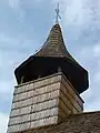 Pronaosul a fost adăugat într-o perioadă târzie, probabil prin sec. XVIII. Nivelul de construcție al său este situat cu circa 0,40 m mai sus decât nivelul de construcție al naosului, iar fundația adâncă de 0,80 – 1 m, din piatră slab legată cu mortar. Ridicarea pronaosului a prilejuit probabil și reamenajarea pragului de la intrarea în naos. La o dată ulterioară a fost ridicată tâmpla de zid care separă naosul de altar. Încastrarea ei a provocat distrugerea unor porțiuni din pictura care acoperă altarul și peretele de est al naosului, datată în a doua jumătate a secolului XVIII[7] . Mici bucăți de tencuială cu resturi din această pictură au fost găsite în săpătură. Amenajarea tâmplei de zid – din cărămidă pe o fundație de piatră adâncă de circa 0,40 m, - a fost legată de săpături care au deranjat o mare parte a naosului, până la circa 1 m de limita sa vestică. Și alte intervenții târzii au răscolit interiorul bisericii. Podeaua din scânduri pa bârne dispuse transversal, pe un strat de nisip, se afla în naos dla circa 0,15 m deasupra nivelului de construcție, iar în pronaos la un nivel mai ridicat cu circa 0,40 m față de cel din naos.
