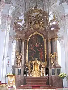Biserica Sfântului Spirit a fost refăcută în întregime în stil baroc în anii 1724-1730 de către Johann Georg Ettenhofer (bolțile și pilaștrii) și de cunoscuții frați Asam (frescele în stil rococo și ornamentele din stuc).