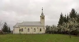 Vechea biserică de lemn a ars în Săptămâna Mare a Paștelui din anul 1939. În locul ei s-a hotărât ridicarea alteia de zid. Slujba s-a ținut în căminul cultural al satului până la sfințirea celei noi.[1]