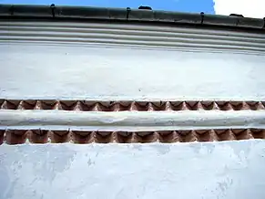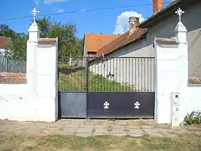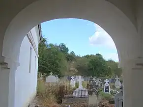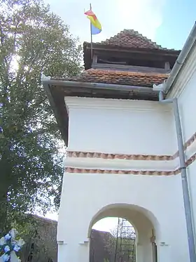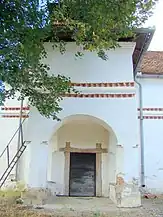 Mica clopotniță este amplasată în partea de sud-vest, fiind susținută de doi stâlpi din piatră și cărămidă.