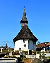 Coiful turnului este ascuțit, cu baza pătrată, învelit ca întreaga biserică cu șiță de brad și are în vârf o cruce simplă de fier forjat.