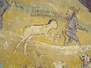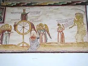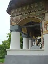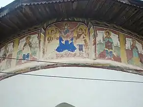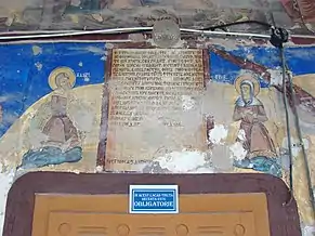 - Transcriere parțială pisanie desupra ușii de intrare în biserică