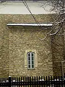 În pridvorul bisericii (adăugat mai târziu) se vede un monument funerar aparținând vornicului Georgi Romalo (decedat 1858), soției sale, Emilu Max și altor membri ai familiei: Maria Romalo, născută Rosetti (decedată 1838), Alexandru Romalo, Ecaterina Romalo, Pulcheria Max, născută Romalo(decedată 1875) și Ecaterina Max. O altă necropolă datată 1877, cuprinde mormintele lui Ilii Burki-Zmău (decedat 1860) și al altor membri ai familiei: Elena Burki, născută Racoviță (decedată 1850) și Alexandru Burki (decedat 1870)[4].