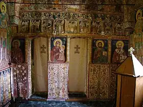 Programul iconografic al bisericii s-a păstrat în întregime, fără intervenții ulterioare. Dintr-o inscripție de la proscomidiar aflăm numele celor doi autori ai picturii, Ioan și Gheorghe care pictează biserica în 1738.