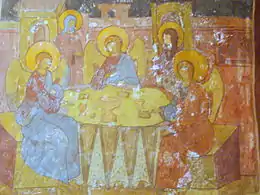 - O ipoteză ar fi aceea că biserica mănăstirii fusese închinată praznicului „Schimbării la Față”, dată fiind prezența acestui tablou într-una din nișele altarului (cf. E. Cincheza-Buculei, op. cit., p. 85).