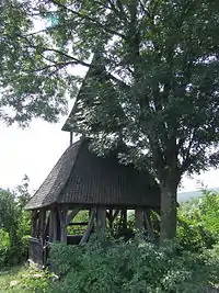 Clopotnița bisericii de lemn din Deag cu hramul Buna Vestire, județul Mureș. Foto: august 2009