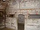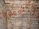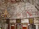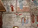 În colțul de sud-vest există următoarea inscripție: „Această biserică sfântă unită s-au întemeiat prin osârdia lui Vasilie Gavriș, paroh unit și Pavel Gavriș și Filimon Gavriș și s-au zugrăvit în anul 1848 iulie 19 zile atunci sau gătat ca să le fie pomenire la toți și neamului lor.”