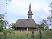 Referitor la construcția acestui sfânt lăcaș, în monografia comitatului se spune că ar data din 1600, iar din conscripția de la 1733 rezultă că s-a petrecut înaintea acestui an. Biserica a fost adusă din centrul de formare al satului pe un loc mai înalt, datorită extinderii lui ca număr de locuitori. Biserica este construită din lemn de brad cu temelia de piatră, având forma de navă și este acoperită cu șindrilă. Fiind așezată în mijlocul cimitirului, ea se evidențiază prin echilibrul proporțiilor și frumusețea turnului, decorat cu patru turnulețe la baza coifului. După toate probabilitățile, anul executării picturii murale este 1823. Din pictura murală interioară, zone întinse sunt grav deteriorate, în special la nivelul pereților. În altar se pot distinge pe boltă câteva cete îngerești. Iconostasul prezintă scenele tradiționale, amplu dezvoltate.