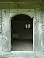 Construcția modestă, cu o planimetrie simplă, dreptunghiulară, are un altar de formă pătrată, cu laturile retrase spre interior, dar cu acoperișul unitar peste toată construcția și lăsat mult în jos. Pereții sunt din lemn de stejar îmbinat la colțuri în dublu cățel, iar în partea superioară console scurte susțin o șarpantă foarte înaltă, acoperită cu tablă zincată. Turnul-clopotniță, ridicat direct peste pronaos, este șindrilit până la foișor și are parapetul înfundat cu scânduri traforate cu un model de triunghiuri. Balconul se susține pe opt stâlpi scurți, legați prin contrafișe de cununa de sus, pe care stă coiful evazat, acoperit și el cu tablă. Ușa de intrare cu acces pe latura sudică are un anacadrament masiv din lemn de stejar, ornamentat cu rozete, ce se păstrează doar parțial. Ușile împărătești au tăbliile înfundate și pictate cu Sfântul Duh în chip de porumbel pe ambele canate și mai jos cu cei patru evangheliști, fără alte decoruri. În naos, pereții laterali păstrează un frumos model pictat sub formă de covor cu motivul crucii, cuprins între chenare de formă rombică, fără alte urme de pictură iconografică. Altarul este golit de toate obiectele cultice, cu excepția a două frumoase lăzi pentru păstrat odăjdii și o cruce ritualică de lemn pictată pe ambele părți[2].