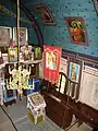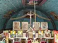 Interiorul este tencuit și văruit. Icoanele împărătești, identice ca factură, datează toate patru din anul 1842, dată consemnată în inscripțiile de donare[2].