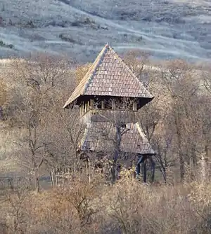 Clopotnița veche rămasă pe amplasamentul inițial în satul Șilea.