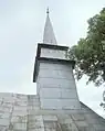 Acoperișul, unitar, are turnul-clopotniță cu coiful în formă octogonală și învelit în tablă, asemenea întregului acoperiș.